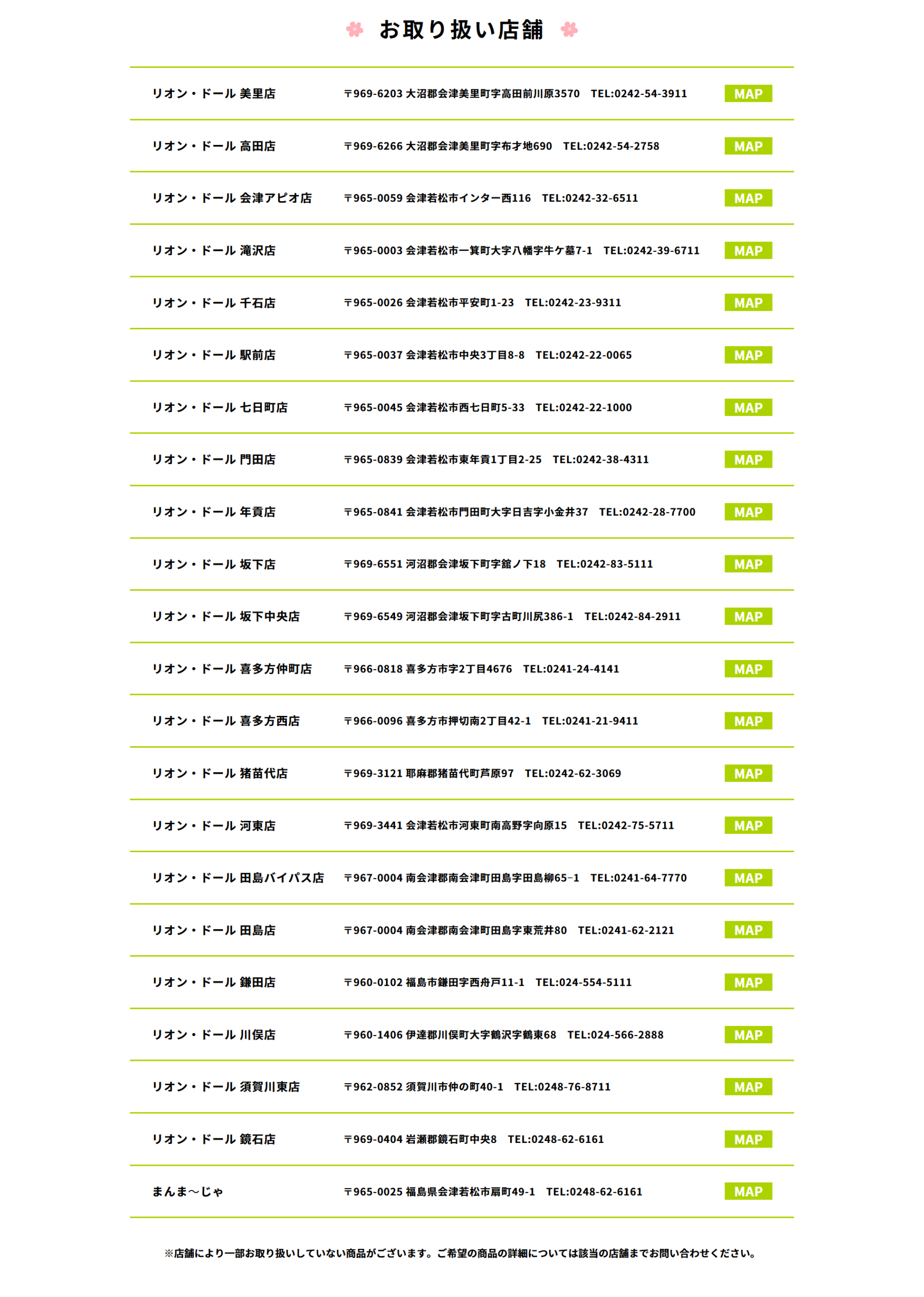 また、会津地方では多数の実店舗にてご購入頂けます